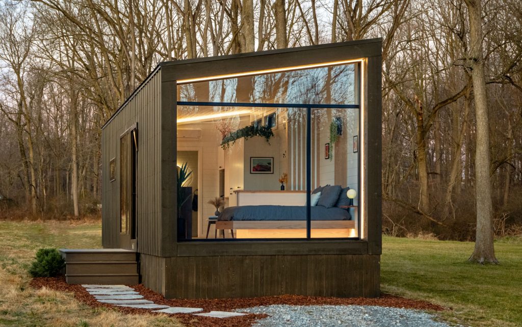 Enjoy floor to ceiling windows overlooking Congaree and Penn’s oak hammock and farm grounds. The Osprey offers a 400 square foot retreat appointed with a king size bed, bathroom with shower, and a galley kitchen. The Osprey can accommodate up to three guests.