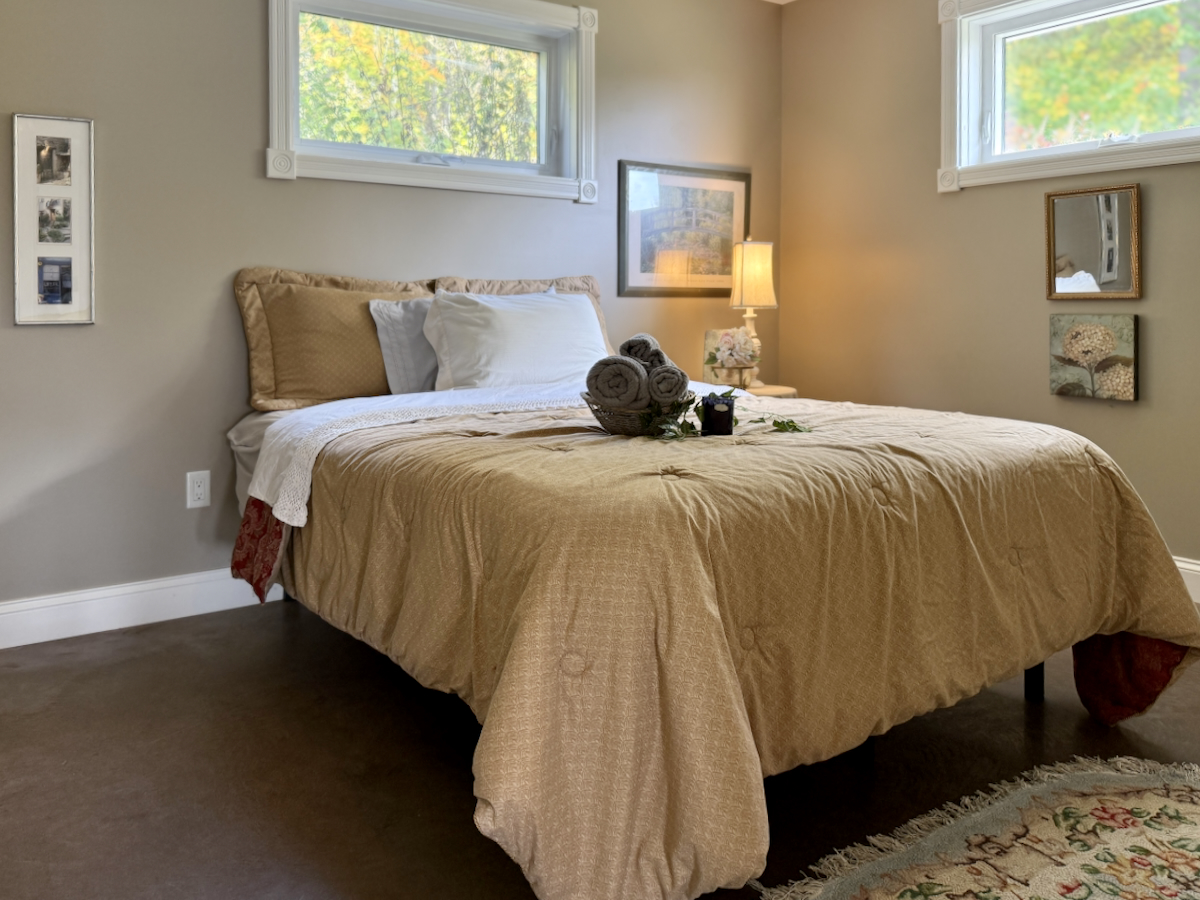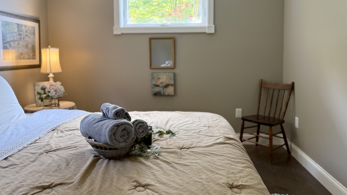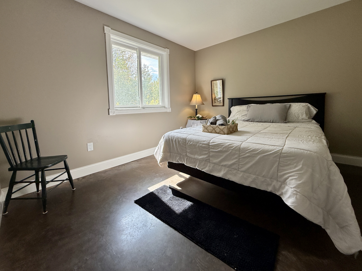Guests can gather in the spacious common areas, cook meals in the fully equipped kitchen, and unwind in the cozy living room overlooking the fields and forest line. The South Bay is designed to feel effortless, supporting shared meals, late-night conversations, and quiet moments by the fire with equal ease.