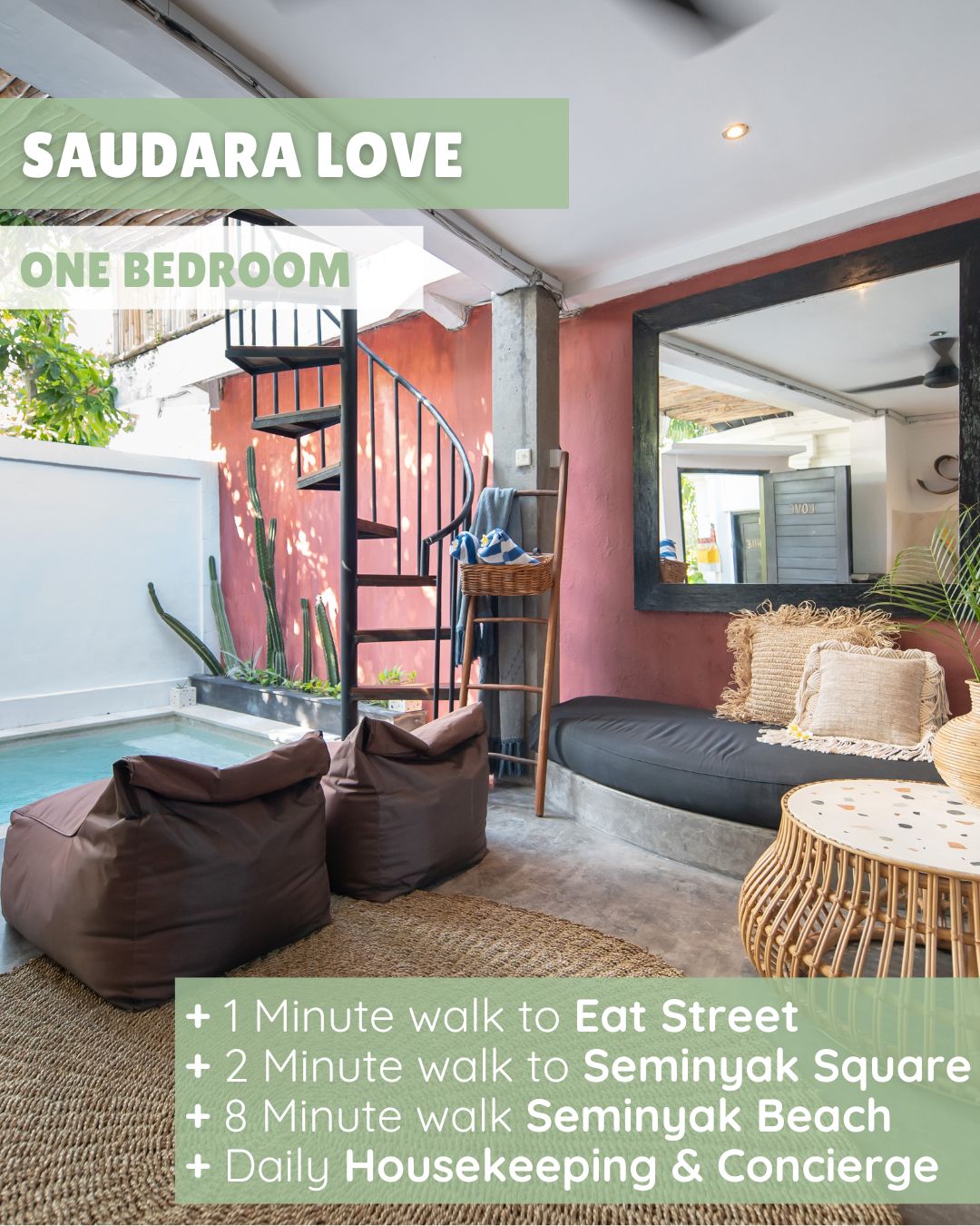 With a private pool and close proximity to the beach and popular attractions, Saudara LOVE offers the perfect oasis for the single or couple traveller seeking both central convenience and luxurious relaxation.