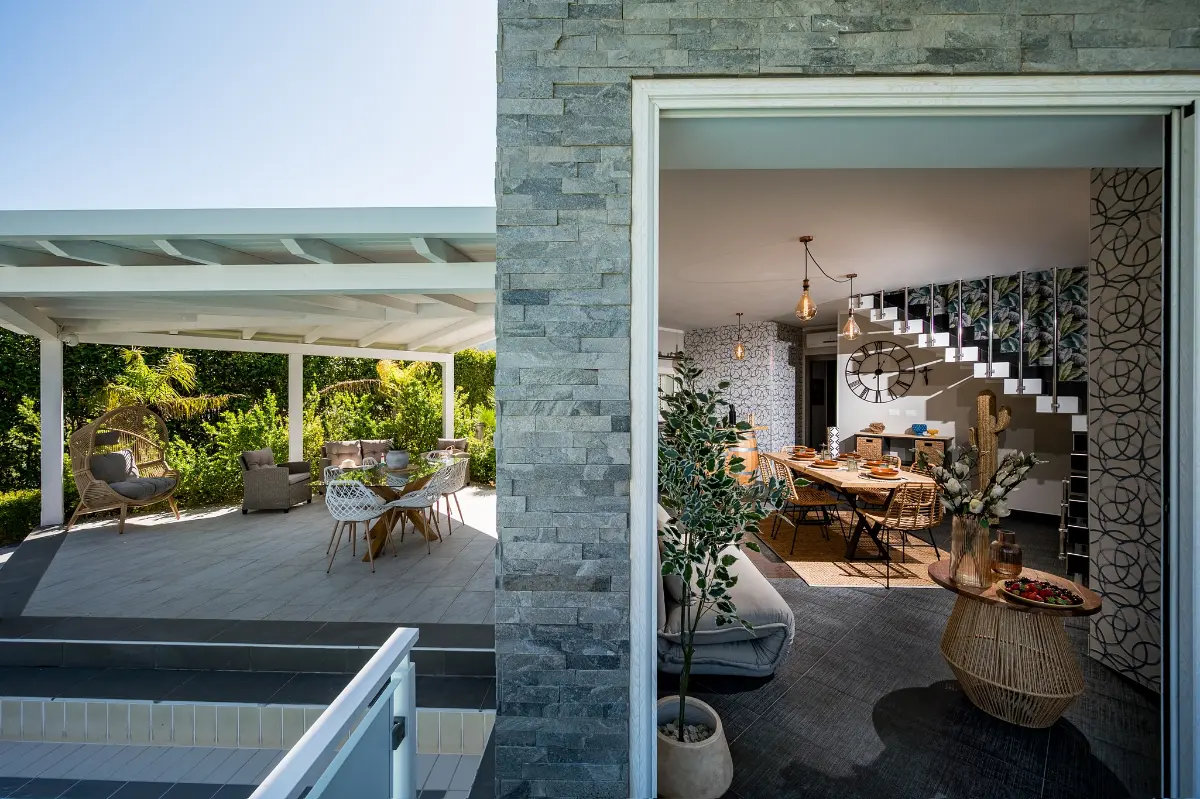 Con 4 camere da letto climatizzate, 5 bagni moderni, una cucina completamente attrezzata e un soggiorno accogliente, la villa è perfetta per famiglie o gruppi di amici. All’esterno, la terrazza panoramica e la zona barbecue invitano a cene sotto le stelle.