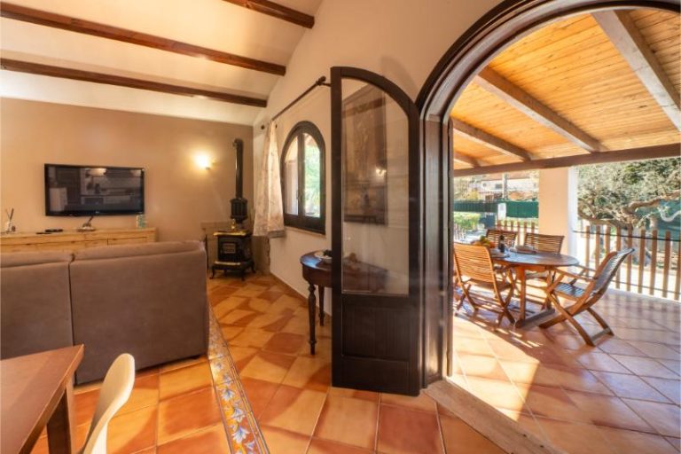 La villa, indipendente con ampio giardino privato, offre tre camere matrimoniali e un divano letto matrimoniale, ospitando fino a otto persone. Il soggiorno, spazioso e accogliente, include una caratteristica cucina.