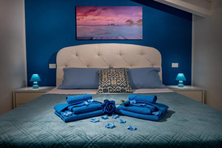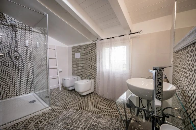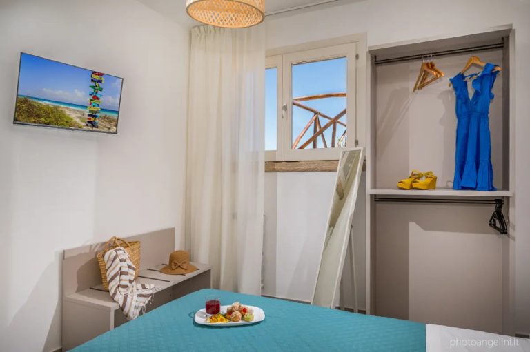 L’appartamento dispone di 5 camere doppie climatizzate con smart TV, 4 bagni moderni, cucina completamente attrezzata e ampie aree living, ospitando comodamente fino a 10 persone. All’esterno, un giardino curato e un’area relax con lettini ti permettono di godere appieno della tranquillità e del sole.